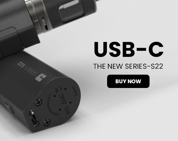 The latest model of the SERIES-S22 features a modern USB-C charging port for improved durability and faster power delivery. Simply connect the provided USB-C lead to a suitable 1A wall plug or computer port. The device supports pass-through technology, meaning you can continue to vape while it is charging.